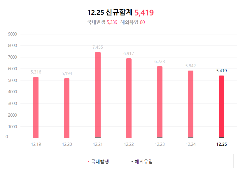 12월25일 코로나 국내발생율, 해외유입자, 자료 입니다.