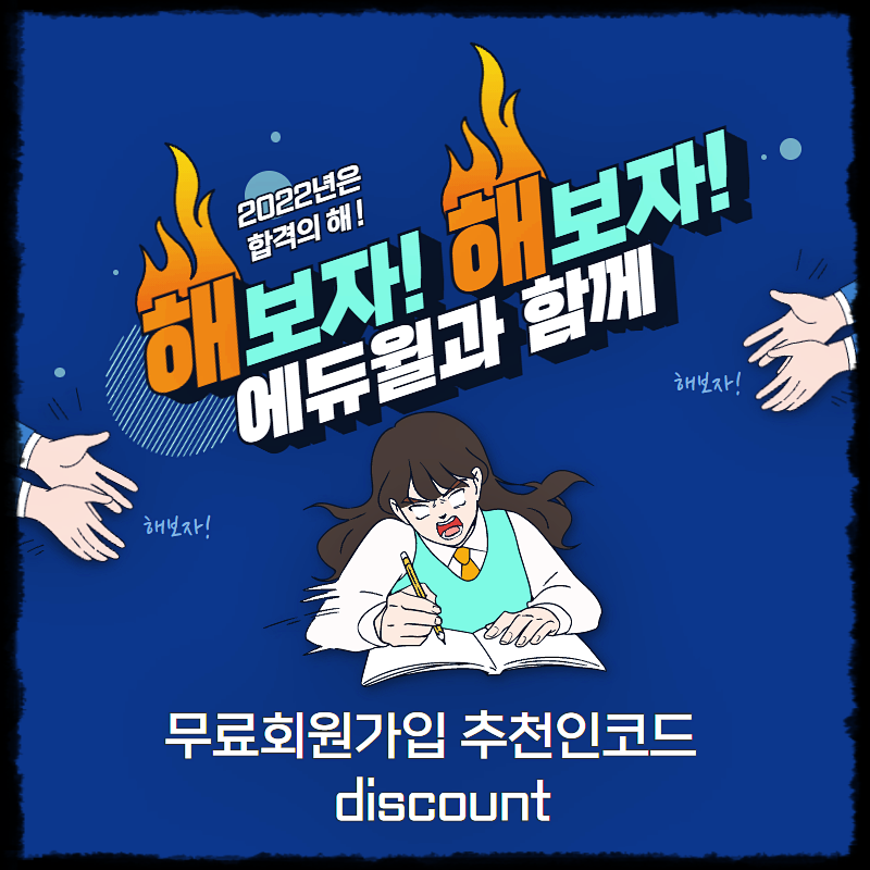 바로 에듀윌검정고시 를 하시려면 에듀윌에 에듀윌 검정고시 인강 회원가입을 하셔야겠죠? 회원가입을 하실 때에 추천인 코드라는 칸이 있는데, 거기에 discount라는 단어를 입력을 하시면 20,000원 할인 쿠폰을 받을 수 있답니다. 35% 할인에 추가적인 20,000원까지 할인을 받을 수 있다니 너무 좋지 않나요?